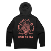 Nothing beats a warm, good-quality hoodie — especially one that makes a statement. The Cerberus Collective “Hard To Kill” Supply Hoodie delivers bold energy with its striking back graphic featuring the fierce wolf design, signature branding, and “Quality Goods” detailing. Built for those who move with resilience and confidence, this is your go-to layer when comfort and attitude matter most.